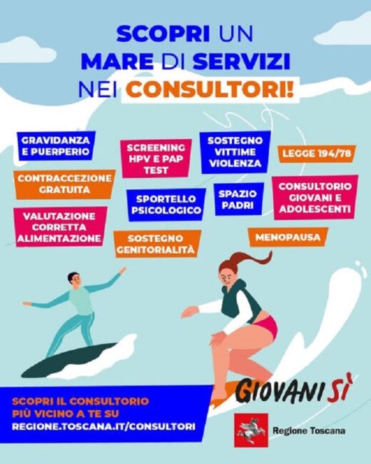 I Consultori del Progetto Giovani Sì della Regione Toscana offrono una serie di servizi (vedi tabella sotto) molto importanti per i giovani di tutta la regione. Sull’Amiata il Consultorio di riferimento è a Castel del Piano in via via IV Novembre. Questi gli orari