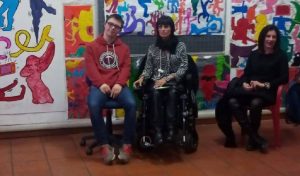 Le amicizie sono come piante delicate” ci ricorda Federica, vanno curate e innaffiate con regolarità, “bisogna anche cercare e dare attenzione agli altri se vogliamo essere cercati e ricevere attenzione. Avere il coraggio di piangere ma anche la voglia di sorridere” . E federica sorride e usa tenerezza ed ironia. Lo fa con le sue espressioni e con le sue parole che si fanno forti nella voce di sua sorella se la sua a tratti manca. Una sorella presente e in sintonia perfetta con la quale può anche battibeccare perché le difficoltà cercano supporto ma mai commiserazione. Questo è il messaggio che è arrivato a questo insolito cerchio di “spettatori” assolutamente partecipi anche con l’emozione che strozza la gola e impedisce di fare domande.  Sono loro , i giovani, i veri destinatari di questo messaggio che spinge ad avere coraggio e andare oltre i propri limiti , quelli che ognuno ha o pensa di avere.