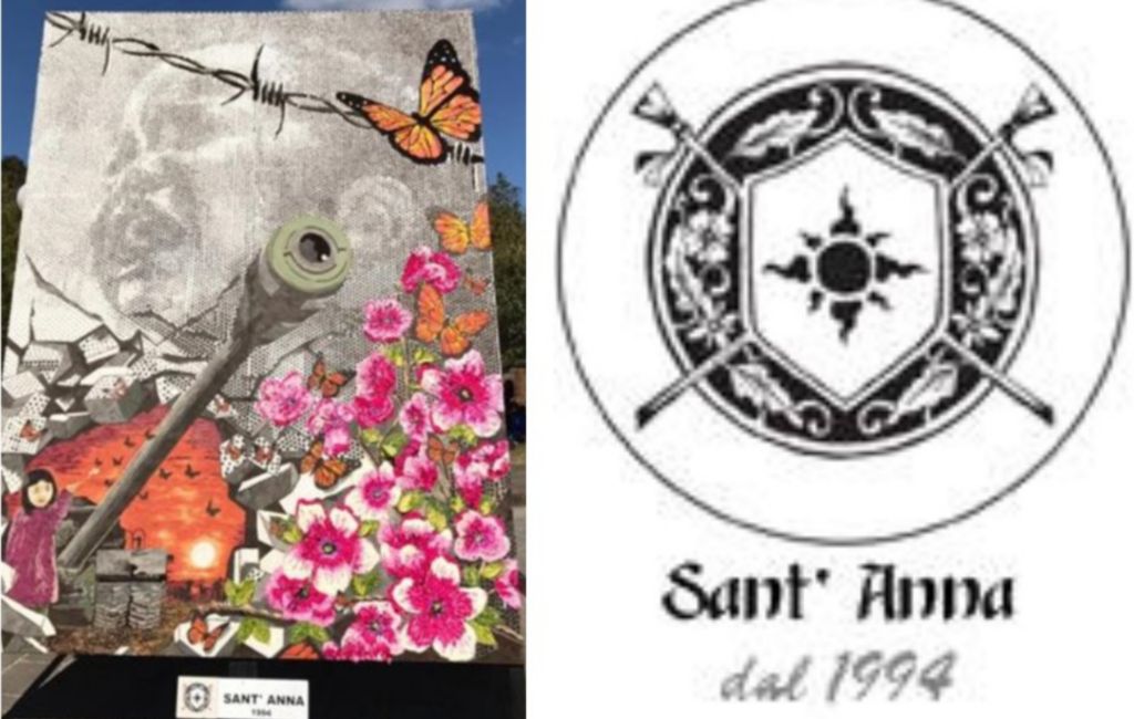 I bianco-neri del Gruppo S.Anna (anno di nascita 1994), hanno trionfato alla Festa dei Pugnaloni nell’anno 2017: il bozzetto dei fratelli Roberto e Riccardo Pulvano rappresenta “Il muro: separazione di un mio da un tuo; di me, da te, di noi da voi….Essere capaci di costruire un mondo senza fili spinati, che feriscono il desiderio dell’incontro, sembra essere solo il sogno di una bambina, che ha la voglia di giocare tra fame e guerra, nel buio della morte, dove le uniche luci sono i lampi della violenza e dell’odio. Eppure se non diventerete come bambini….si è l’invito, provocazione, di quel Figlio della Madre del Fiore che ogni anno fa sbocciare la speranza….Una speranza che ha i colori della vita, che ha la forza della fede”