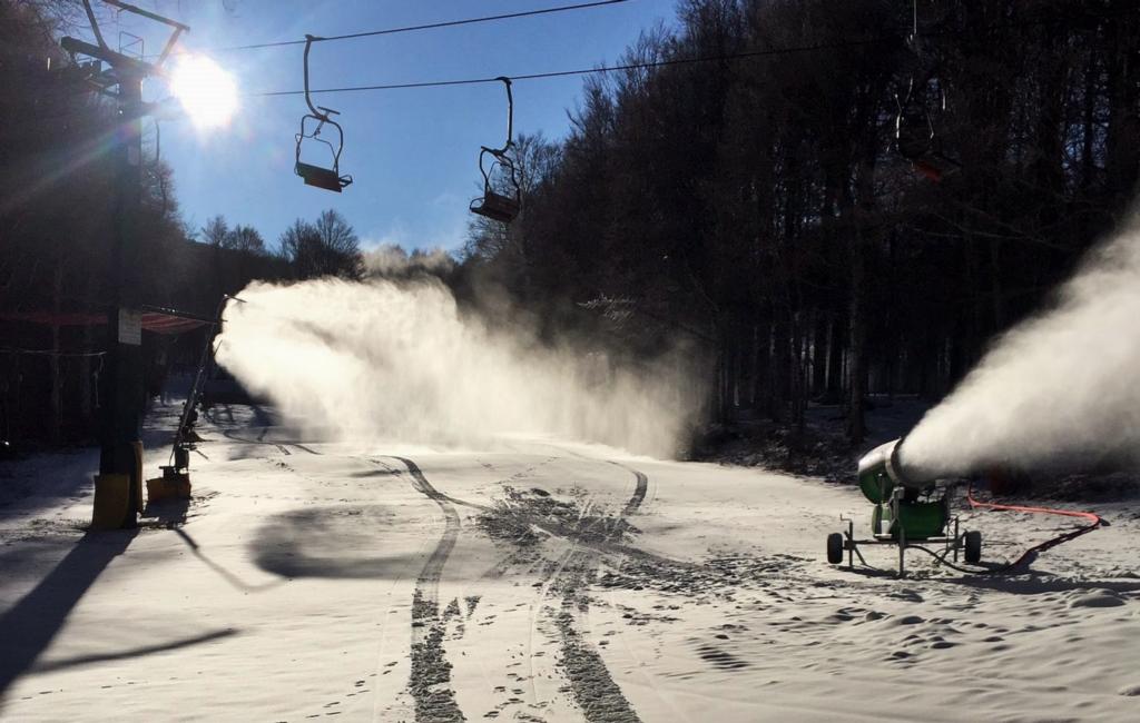 Impianto di innevamento in azione da ieri sera in Vetta e al Prato delle Macinaie. Il repentino abbassamento delle temperature (13 gradi in meno in meno di 24 ore) ha permesso di riattivare i “cannoni” per la produzione di neve artificiale così da imbiancare subito le piste servite del Pianello e dei Campi Scuola nelle due aree sciistiche. Oltre a queste la novità è che si sta preparando anche la pista servita dalla sciovia Asso di Fiori (Macinaie).