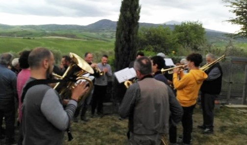 In chiusura i Maggiaioli,  hanno raccolto applausi dal  pubblico presente, richiamando anche l’attenzione dei passanti, durante l’esecuzione di alcuni madrigali della loro tradizione, intervallati dai vivaci brani musicali eseguiti dalla piccola fanfara di strumenti a fiato. Il canto del Maggio, o “Maggiolata” si svolge ogni anno dal primo pomeriggio del 30 Aprile e per tutta la notte seguente, raggiungendo da prima poderi e casolari,  spostarsi poi nei centri di Rocca e Castiglione. E’ un canto itinerante con questua, idealmente chiuso dalla merenda paesana offerta in una domenica successiva nei locali della Pro Loco, grazie al denaro raccolto appunto attraverso libere offerte della popolazione
