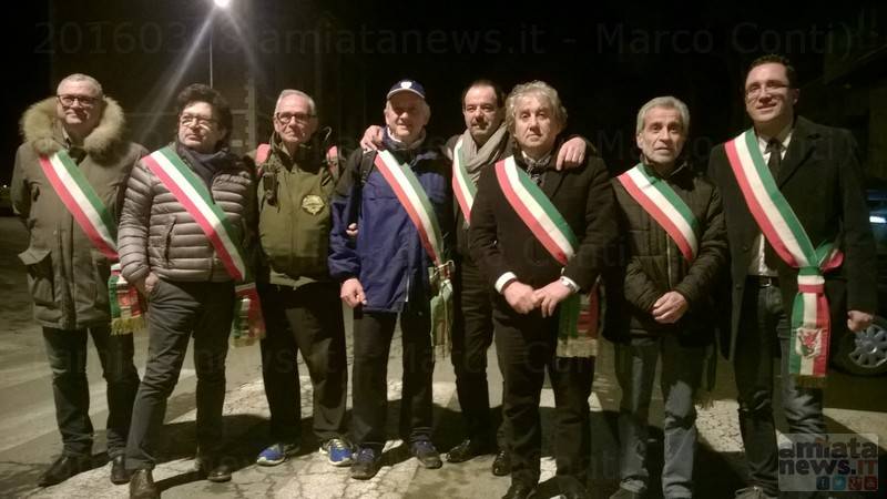 Undici sindaci assieme a Claudio Galletti, accolgono Marco Mastacchi, Sindaco di Mozzuno (Bo), in cammino verso Palazzo Chigi, per protestare contro i tagli ai piccoli Comuni.