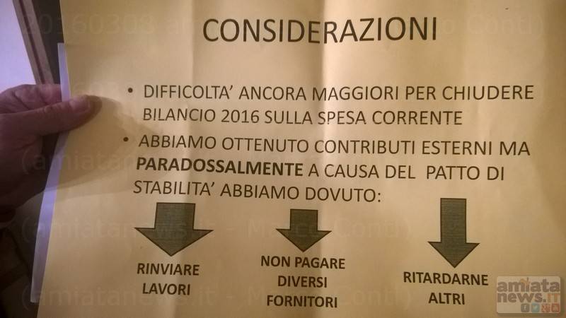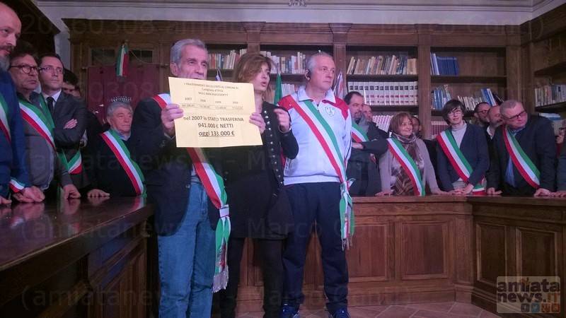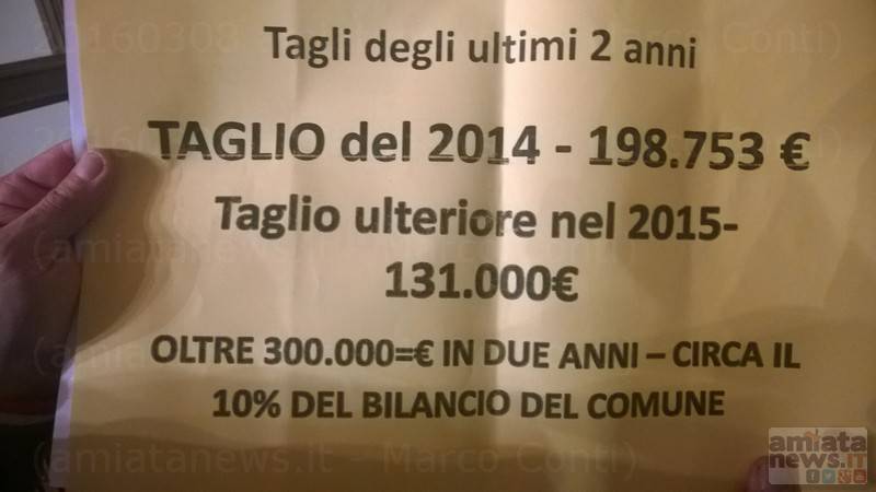 L’incontro con Marco Mastacchi, si è svolto ieri sera, nella splendida sala Consiliare del Municipio in Piazza del Vecchietta. L’occasione è stata accentuata dall’invito, da parte del programma televisivo Ballarò, in onda in prima serata RAI 3, con alcuni collegamenti in diretta specifici dell’argomento. A Castiglione, sono per l’occasione convenuti una quindicina di Sindaci delle provincie di Siena, Lucca, Arezzo, Pisa e Bologna. La parte del “padrone di casa”, l’ha certamente fatta Claudio Galletti, che, al primo, intervento in diretta, ha mostrato la scuola media , in Via della Buca, da alcuni anni inagibile, lamentando il fatto una classe fa lezione proprio nel suo studio all’interno del Palazzo Comunale. Il Sindaco Galletti, ha poi mostrato un grande cartello in cui si notava, con evidenza, il taglio degli aiuti finanziari da parte dello stato centrale che, a partire come detto in precedenza dal 2007, un taglio di 136.000 Euro, che ha gravato molto sulle opere del paese.