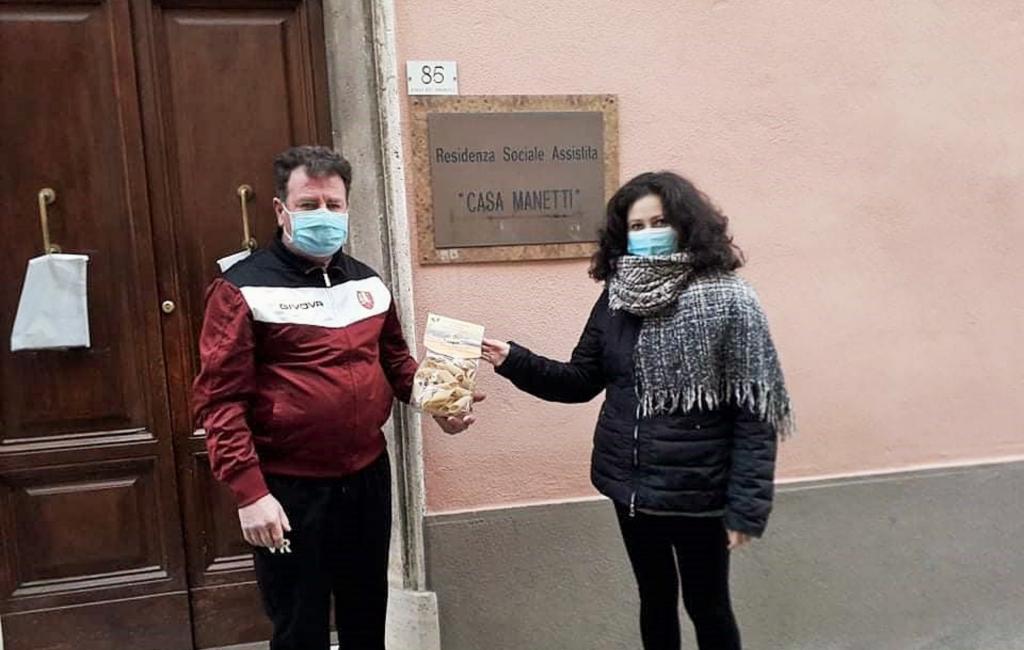 Una certa quantità di pasta prodotta e confezionata in Val d’Orcia (circa 50 chili), che era nella disponibilità degli sportivi, è stata donata agli ospiti della Residenza Assistita “Casa Manetti”.