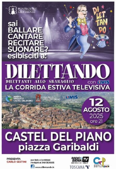 Martedì 12 agosto alle ore 21.00 “Dilettando” fa tappa a Santa Fiora. La celebre corrida estiva televisiva ideata e condotta da Carlo Sestini sbarca nel cuore dell’Amiata. Dilettanti allo sbaraglio in collaborazione con Avis. Canto, ballo, musica, teatro e tanto divertimento con i protagonisti più improvvisati (e sorprendenti) dell’estate.
