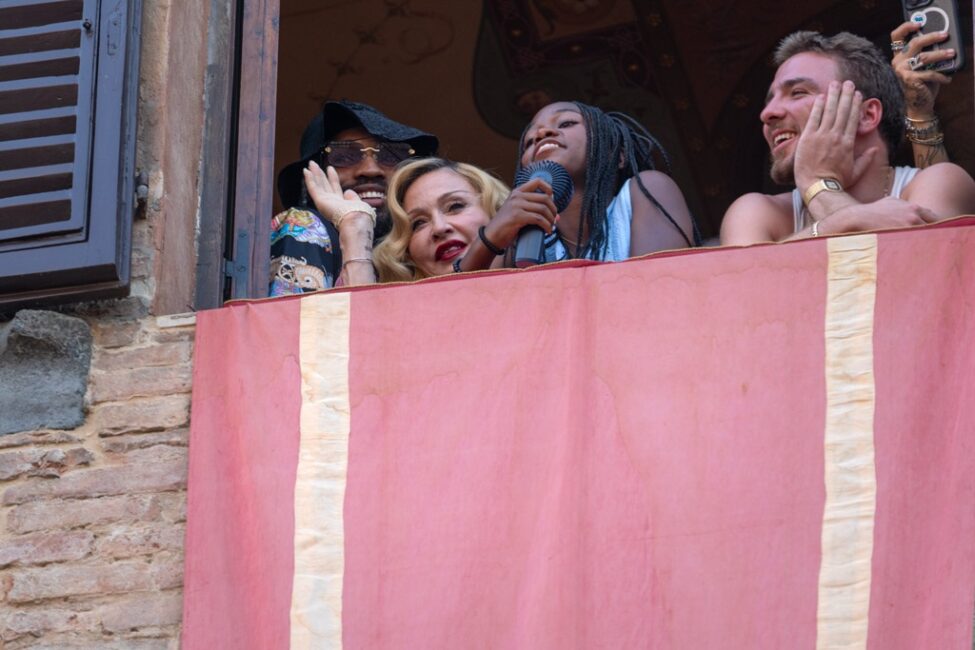 Vasta eco internazionale per la presenza al Palio di Siena della popstar Madonna: Vestita elegantemente, coperta da un gran cappello e da occhialoni neri, è arrivata a Siena nel pomeriggio del 16 agosto 2025 per assistere al Palio dell’Assunta, che coincide con il giorno del suo compleanno. E’ scesa da un van in Piazza Indipendenza e ha camminato per circa 200 metri fino al Palazzo Pannocchieschi d’Elci, accompagnata dai suoi familiari, i figli Rocco e le gemelle Ester e Stella, dal fidanzato Akeem Morris e da alcuni amici oltre al servizio di sicurezza. Madonna ha seguito con attenzione anche le lunghe fasi della mossa e a un certo punto è apparsa alla finestra anche con in mano un fazzoletto dell’Aquila. Finita la carriera ha avuto parole di elogio per l’evento a cui aveva assistito e per la bellezza della città, intatta nella sua storicità. Poi ha festeggiato il 67° compleanno all’albergo Continental, nel cuore della città. Tra gli invitati c’era anche Sting.