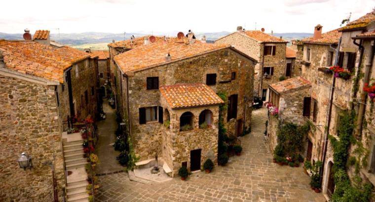 Inizio del percorso tra le vie del borgo medievale di Montemerano, ufficialmente dichiarato uno “fra i Borghi più belli D’Italia” seguendo le gesta di Margherita Aldobrandeschi.