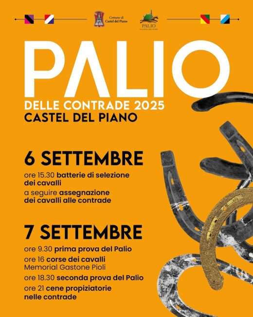 Il Comune di Castel del Piano avvisa la cittadinanza che nei giorni 6, 7 ed 8 settembre 2025, in occasione delle batterie, delle prove e del Palio di Castel del Piano, saranno introdotte alcune regole comportamentali a tutela del sereno svolgimento della manifestazione e dell’incolumità pubblica.