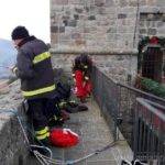 Non è sicuramente semplice calarsi dall’alto di una delle rocche più imponenti e alte della provincia senese, anche per i Vigili del Fuoco, pur abituati ad interventi sul territorio talvolta ad alto valore tecnico: “Tutti noi abbiamo una formazione importante per svolgere il nostro lavoro – ci dice Giani Carmine, Comandante del Distaccamento di Piancastagnaio – Quella che abbiamo effettuata oggi fa parte dell’addestramento di base del Nucleo Speleo Alpino Fluviali (SAF), una unità operativa del Corpo Nazionale dei Vigili del fuoco della Repubblica Italiana,  di cui i due vigili fanno parte come altri del Distaccamento di Piancastagnaio. Nello specifico, oggi è stata effettuata una manovra “calata in corda semplice con corda di sicura”, un’operazione che è possibile svolgere in estrema sicurezza, da parte di tutti i pompieri. Poi ci sono gli altri livelli di specializzazione SAF che prevede quattro specializzazioni contraddistinte dai codici 1A, 2A, 1B e 2B; quest’ultima prevede la calata dall’elicottero ed è la specializzazione più completa. Le calate possono essere effettuati nei fiumi, nei fondali delle acque lacustre e marine, dalle vette alpine, dirupi di ogni genere fino agli edifici rivolte al recupero di persone, animali e cose. Dunque, anche per questo tipo di manifestazioni, è sempre obbligatoria e necessaria una formazione importante, a garantire la sicurezza di tutti. Siamo preparati a questo e costantemente compiamo le esercitazioni e le attività necessarie per garantire la salvaguardia delle personde e dell’ambiente in generale.”