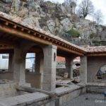 I lavori sono in buona fase di avanzamento; a quanto ci vien detto, dovrebbero concludersi a breve, in primavera, dopo alcuni stop dovuti alla stagione invernale. Durante la nostra visita di questa mattina, abbiamo constatato come sia già effettuata la demolizione della precedente copertura in latero-cemento (anni ’70) fortemente degradata e la successiva ricostruzione della copertura in legno di castagno massello (per il manto il recupero dei vecchi coppi). A questo anche la sistemazione delle strutture portanti verticali, in particolare delle colonne (c’erano dei fuori piombo), smontate e rimontate dopo i consolidamenti dovuti.