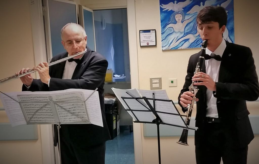 Nel reparto di oncologia dell’ospedale di Campostaggia due talentuosi musicisti, Franco Vichi al flauto e Matteo Fabbrini al clarinetto, hanno allietato con le loro note avvolgenti i pazienti del day hospital oncologico.