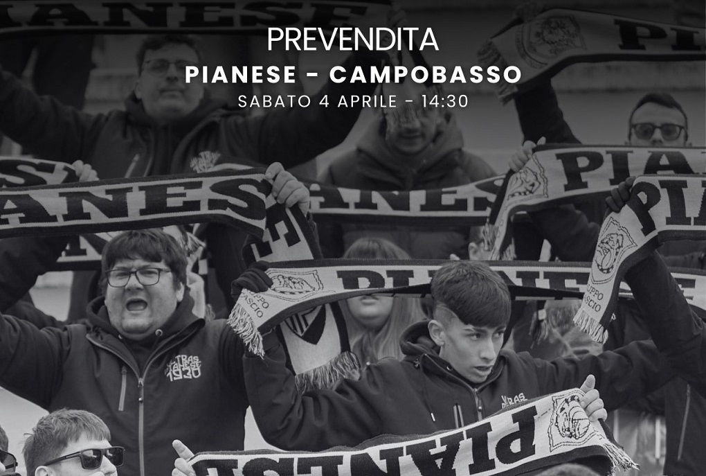 L’Us Pianese informa che i biglietti per la partita di sabato prossimo, 4 aprile 2026, in cui le zebrette affronteranno il Campobasso nella 35ª giornata del campionato di Serie C Sky Wifi 2025/26, saranno disponibili fino al giorno della gara, in programma alle ore 14:30. I tagliandi potranno essere acquistati in tutti i punti vendita Ciaotickets e online su Ciaotickets.com.
