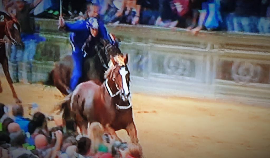 Un Palio drammatico che ha visto quasi tutte le Contrade cadere sul tufo. Tempesta caduto al secondo Casato mentre era primo.