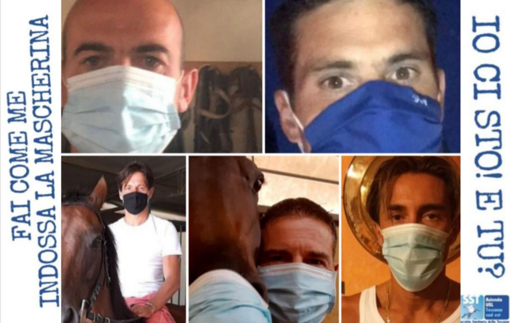 Un selfie per dimostrare il proprio impegno anticovid. Ovviamente un primo piano con la mascherina. Alla campagna anticovid della Asl Tse dedicata al giovani sui social network Instagram ,Twitter, Facebook e YouTube si uniscono i fantini del Palio di Siena. Dopo l’adesione del Ministro della Salute Speranza, i 99 sindaci dell’area vasta, arrivano anche Jonathan Bartoletti detto Scompiglio 5 Pali vinti, Giovanni Atzeni detto Tittia 7 Pali vinti, Giuseppe Zedde detto Gingillo 3 Pali vinti, Andrea Mari detto Brio 6 Pali vinti, Luigi Bruschelli detto Trecciolino 13 Pali vinti.