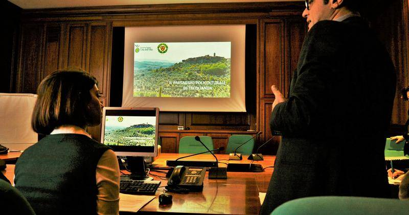 Il territorio di Trequanda ha ottenuto il prestigioso riconoscimento di “Paesaggio rurale storico”. L’attribuzione è avvenuta da parte dell’Osservatorio nazionale del paesaggio rurale, delle pratiche agricole e conoscenze tradizionali che si è riunito a Roma il 10 gennaio al Mipaaf (Ministero delle politiche agricole, alimentari e forestali), per giudicare il dossier presentato dal Comune dal titolo “Il paesaggio policolturale di Trequanda”. Si tratta del primo ente locale in Toscana, e tra i primissimi in Italia, a vedere riconosciuta l’autenticità del proprio paesaggio e la tutela della biodiversità: un valore sempre più raro che il Ministero ha sentito il bisogno di “certificare” e tutelare. L’obiettivo da parte di Trequanda è stato raggiunto in collaborazione con l’Associazione nazionale città dell’Olio e con un gruppo di esperti, che hanno lavorato al dossier. Al termine dell’iter della candidatura, nei giorni scorsi, Tiziano Tempesta dell’Università di Padova e Costanzo Massari del Mipaaf avevano verificato sul posto, insieme al sindaco Roberto Machetti, la corrispondenza dei dati e delle mappe con la realtà. La grande armonia del paesaggio ha sorpreso i “commissari” ministeriali inviati a Trequanda, come la commissione presente a Roma. Lo stesso sindaco e la studiosa di questi temi, Martina Venturi, hanno ricevuto apprezzamenti nel corso dell’esposizione del dossier  proprio per le caratteristiche del territorio. Emilio Gatto, dirigente del Mipaaf, ha dato l’annuncio del riconoscimento dopo il giudizio a porte chiuse da parte componenti dell’Osservatorio nazionale: un momento emozionante, sancito da strette di mano e da un applauso.