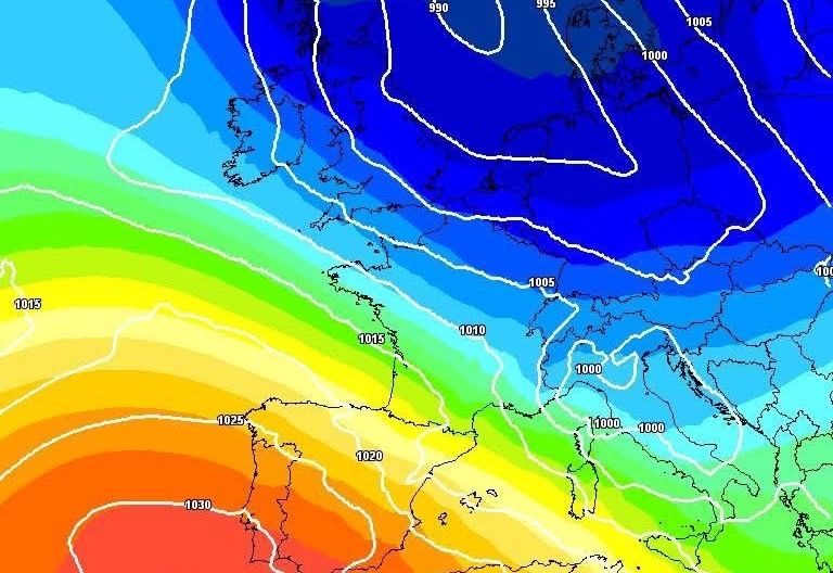 “Scivolo atlantico.” Inizio settimana con una curvatura delle correnti più nord occidentale. Non più quindi perturbazioni che scorrono orizzontalmente da ovest verso est, ma con inclinazione più pronunciata a causa di una timida elevazione dell’ Anticiclone azzorriano sulla penisola iberica.