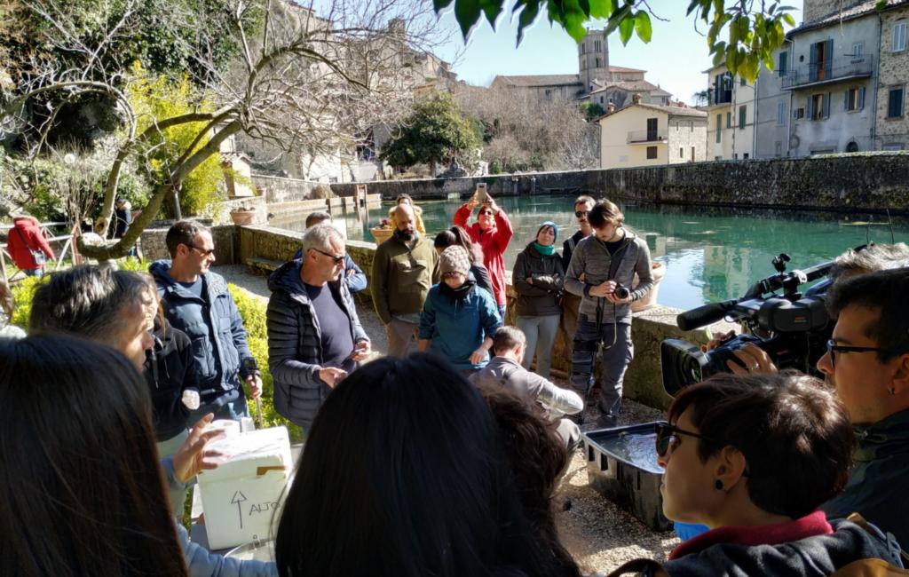 Venerdì 21 febbraio le riprese hanno interessato il Parco della Peschiera dove è in atto un importante progetto di riproduzione della trota Macrostigma per il ripopolamento dell’alto corso del fiume Fiora. Sono state effettuate riprese alla Galleria della Sorgente e infine hanno dedicato uno spazio speciale alla tradizione musicale di Santa Fiora con il Coro dei Minatori.