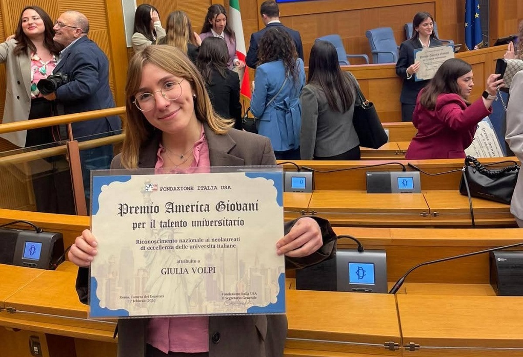 Prestigioso riconoscimento per Giulia Volpi: la giovane di Seggiano è stata infatti insignita del Premio America Giovani per il talento evidenziato negli studi universitari. A lei il Comune di Seggiano ha dedicato un post di congratulazioni: “Si esprime il più vivo compiacimento per il prestigioso traguardo conseguito dalla nostra concittadina, la Dottoressa Giulia Volpi, la quale ha onorato la comunità di Seggiano distinguendosi nel panorama accademico nazionale e internazionale. Alla Dottoressa Volpi giungano le più sentite congratulazioni e l’auspicio di una carriera professionale ricca di ulteriori e meritati successi, certi che il suo esempio rappresenti un motivo di vanto per l’intero territorio”.