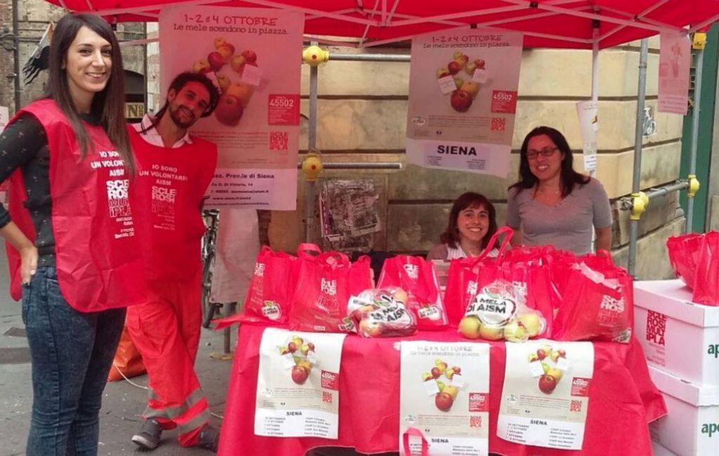 Siena e provincia. Dal 1 al 4 Ottobre torna “La Mela di AISM”: oltre 2 milioni di meleti aspettano per sostenere la lotta alla sclerosi multipla